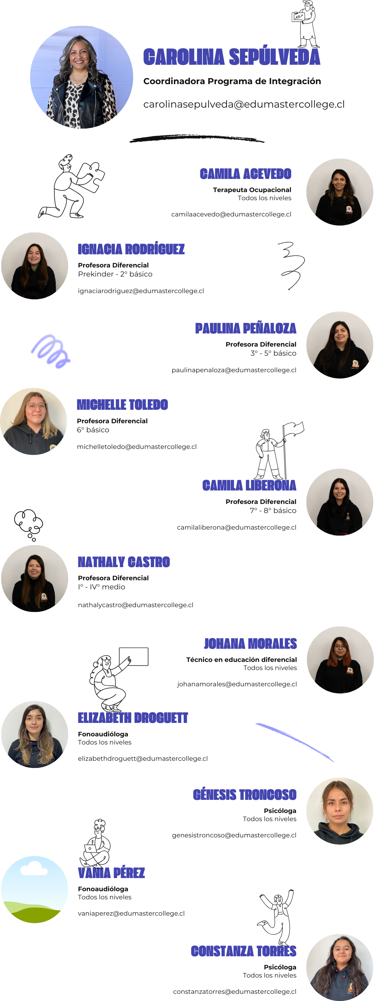 Actualmente, el Instituto Cristiano Edumaster College, cuenta con un equipo multidisciplinario compuesto por 11 profesionales, entre las que se cuentan psicólogas, educadoras diferenciales, fonoaudiólogas, terapeuta ocupacional y técnico en educación diferencial, quienes se encuentran en constante capacitación y actualización, con el fin de abordar de manera interdisciplinaria y efectiva las necesidades educativas especiales que pudiesen representar una barrera para el aprendizaje. De esta forma, se busca entregar a los estudiantes del PIE herramientas y aprendizajes que les permitan adaptarse a su entorno y desenvolverse de mejor manera en la vida.